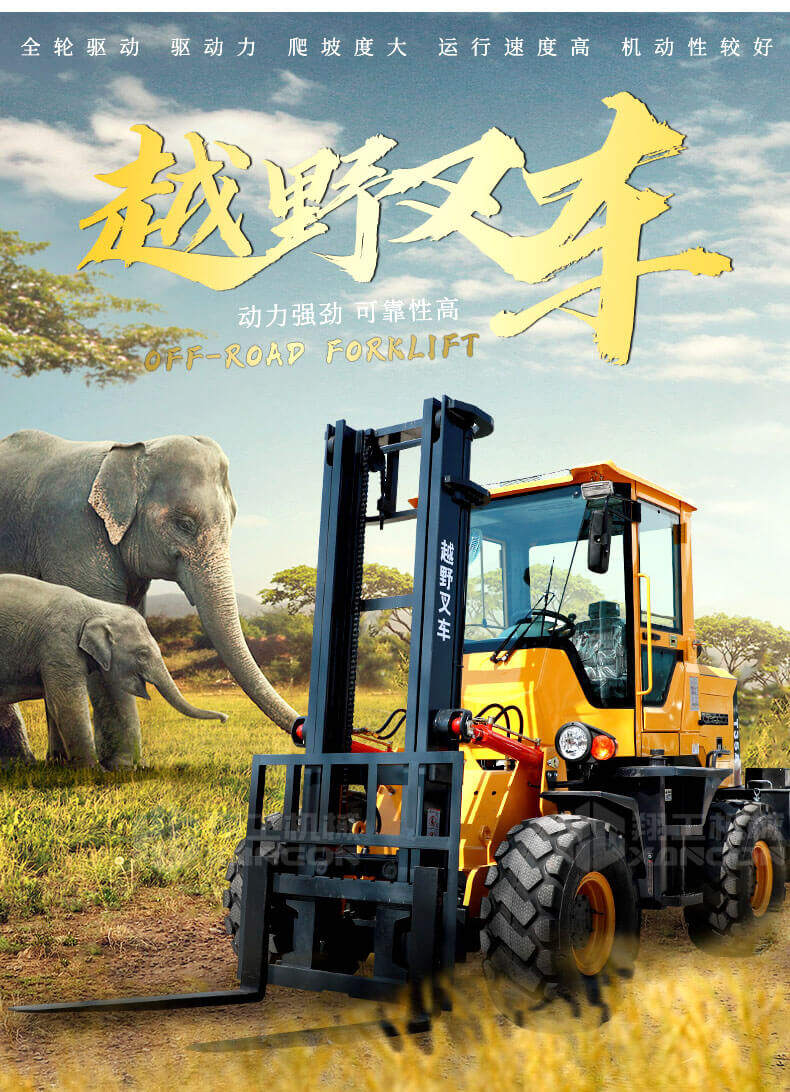1.普通叉車是兩輪驅動的,而越野叉車是四輪驅動的。