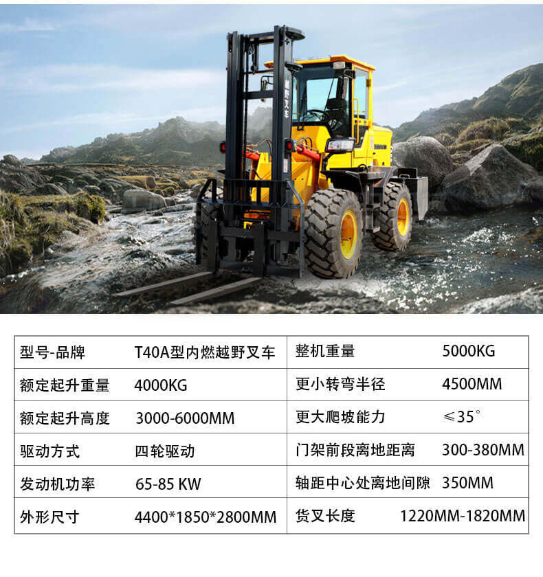 3.普通叉車只能在平整的路面上作業(yè),而越野叉車既可以在普通路面上作業(yè),還可以在山路泥路崎嶇道路作業(yè),輪胎抓地力強,不打滑。