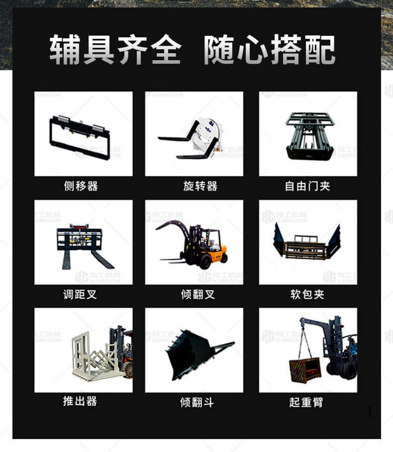 越野叉車可以在坡地和不平地面上進行貨物裝、卸、堆垛及搬運作業(yè),具有良好的機動性、越野性可靠性。其功能多樣,可搭配側(cè)移器、調(diào)距叉、旋轉(zhuǎn)器、軟包夾、推出器、側(cè)翻叉、側(cè)翻斗、起重臂等工具完成不同的工作。