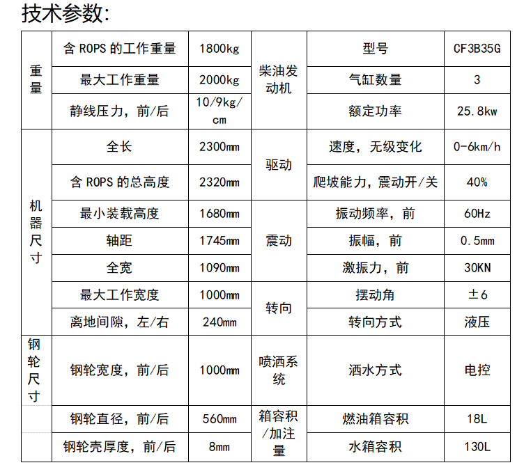 此款壓路機(jī)自重1050kg,振動力可達(dá)3噸,液壓轉(zhuǎn)向。
