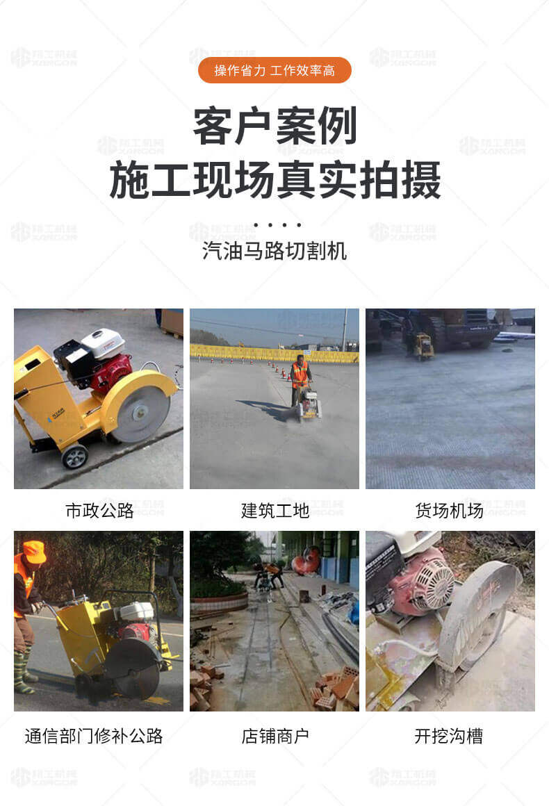 用于公路、市政、建筑、煤氣、通信部門修補公路或開挖溝槽時進(jìn)行路面切割。相對于電動或柴油動力的路面切割機,操作輕巧省力,運輸方便,工作效率高。