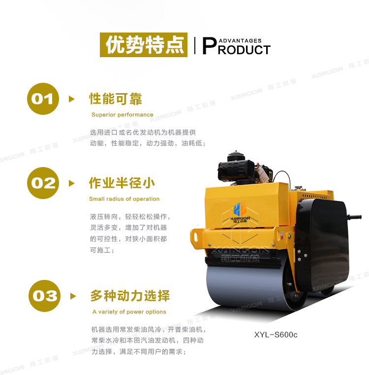 XYL-S600C 柴油雙輪壓路機產(chǎn)品特點: